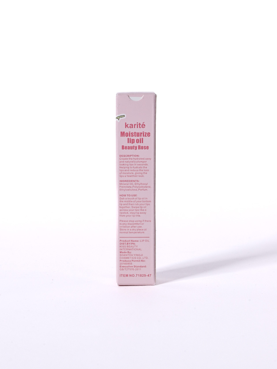 هذه الصورة تظهر منتج زيت ترطيب الشفاه (Moisturize Lip Oil) من علامة Karité، بنكهة أو عطر الورد (Beauty Rose).